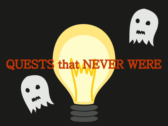 Okay so, I had two ideas for quests before I realized that I'll never have the gumption to go through with them and I don't really have enough skill in art or game/puzzle design to do them justice anyway.