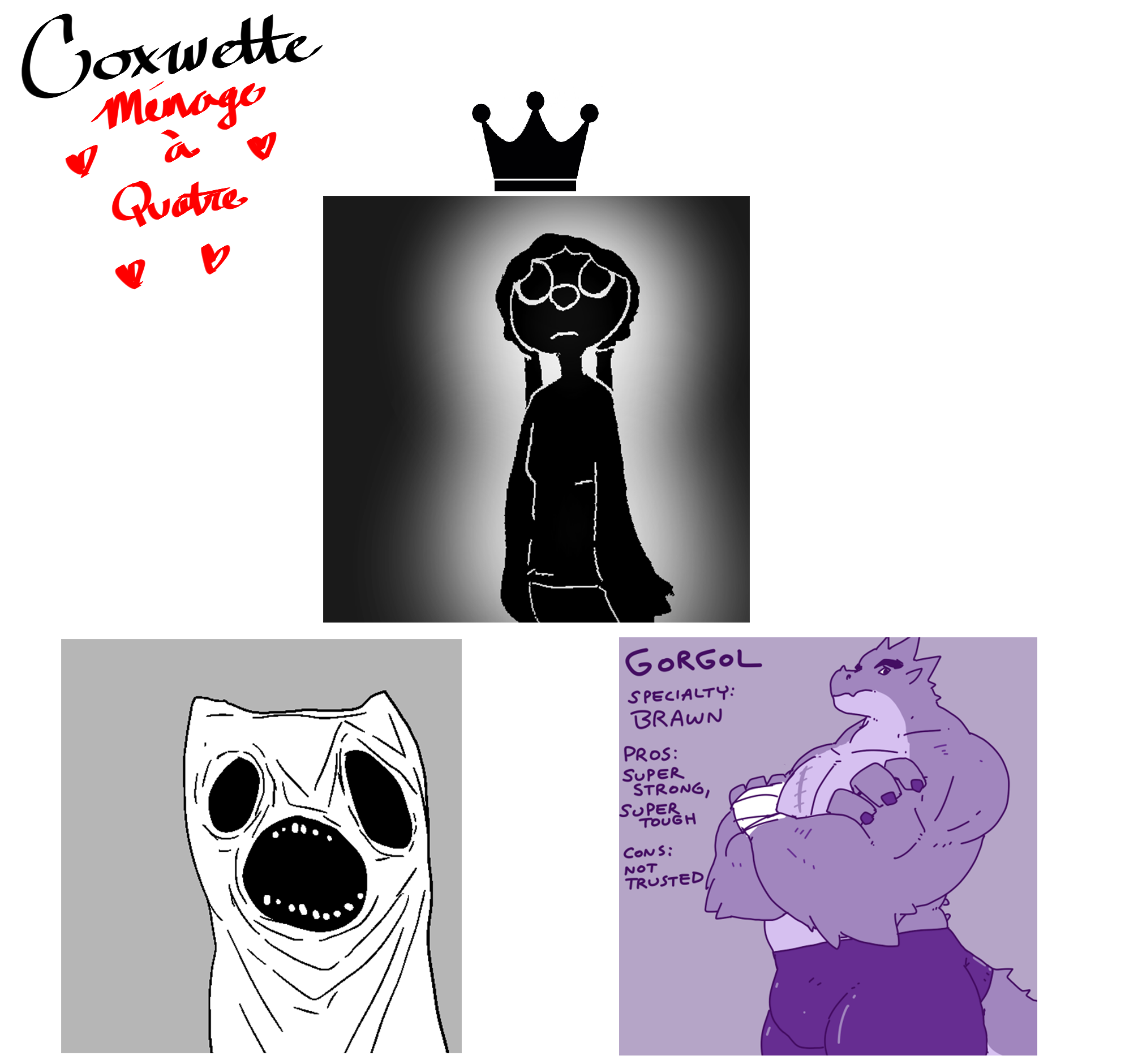 I think the fact that you can say Coxwette sex scene and be mostly right is kind of telling, though. I mean, you've had four threads and maybe two sex scenes between them. The story-porn ratio is skewed way towards story here. Which works, and I like that it takes a realistic amount of effort for Charlemagne to talk people into sleeping with him.