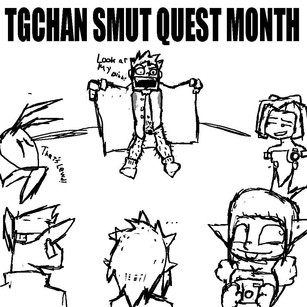 WELCOME TO SMUT QUEST MONTH, WHERE WE DO LITERALLY THE SAME THING WE DO THE WHOLE YEAR, BUT NOW IT'S OFFICIAL! YOU SICK MOTHERFUCKERS GET TO WATCH AS /QUEST/ GETS FILLED TO THE BRIM WITH SMUT QUESTS AND INSIDE THE QUEST GETS SPAMMED WITH "WOULD YOU A ______?" QUESTIONS!