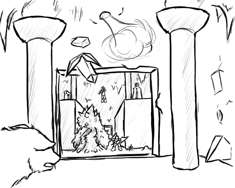At the first explosion, his gun roared, a round lodging into the skull of the first taskmaster. At the second, with all eyes up, he dropped down and took aim on a second. Pandemonium began to rush through the guards, who couldn't identify where the explosions were coming from, until the walkway began to collapse down, a pop leading to another section. Their panic was thrilling, and another round took another slave-master down. The lifted eyes of a sorely abused lizard-man caught the attention of For'se, who tossed him the keys to the chains at his throat. It didn't take an alchemist to figure out what he had to do.