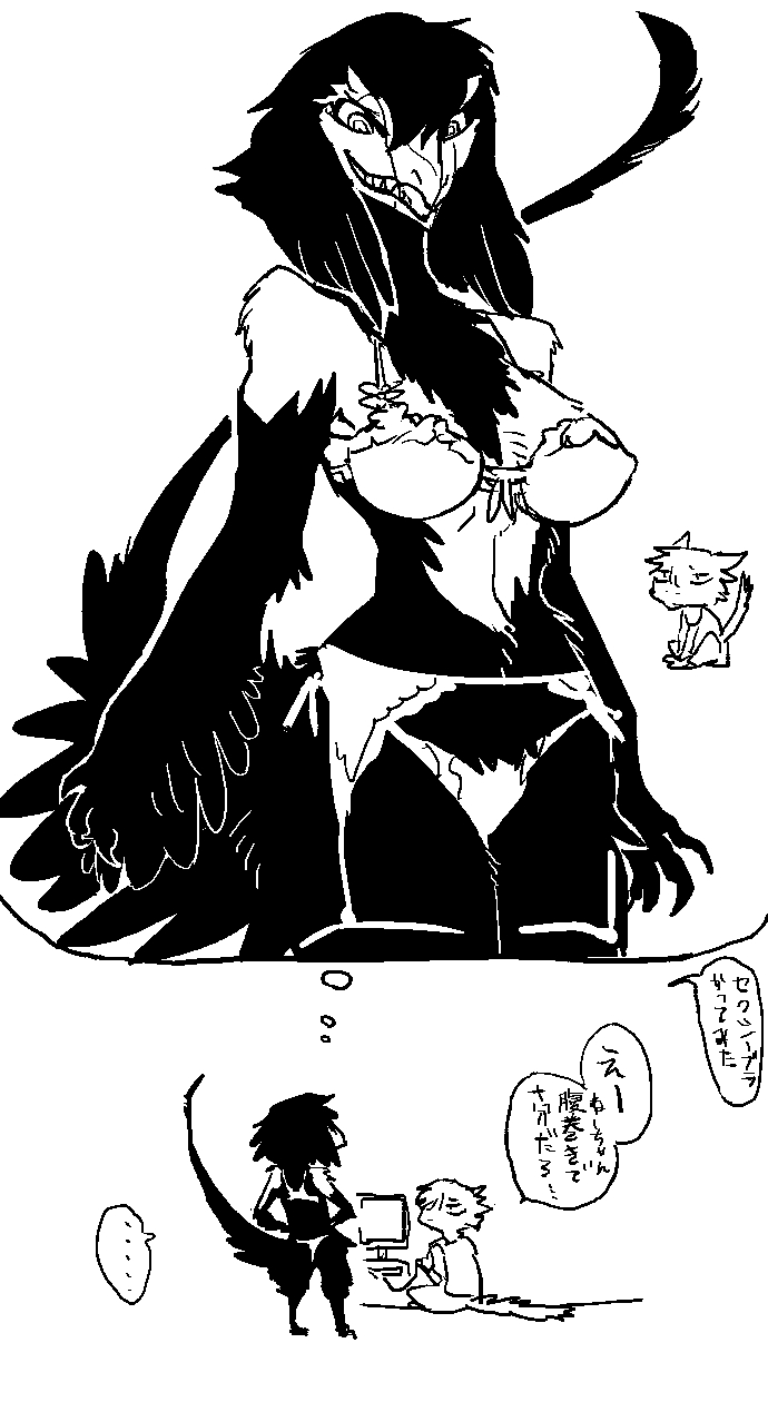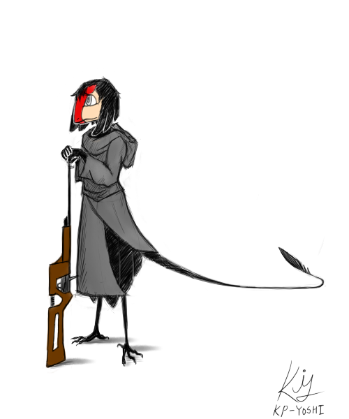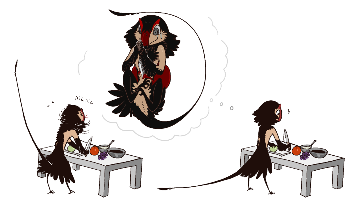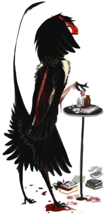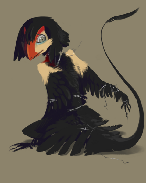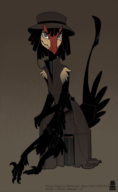 Nevreans are, from what I've been able to piece together, bird-like dinosaur creatures. Something not to different from an anthropomorphic archeopteryx. They are warm-blooded, and cannot fly.(Even the males, with their larger wings) Like RL birds, the males of the species are brightly coloured, and the females are duller.
