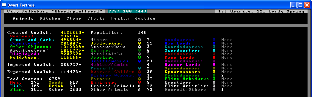 As if on queue, migrants have arrived. A furnace operator, a tanner, a conversationalist, a woodcrafter, A fishery worker, a mechanic/hospital worker, and a new soldier for The Inky Doors. Not a bad haul, considering the tantrum spirals, death, and sieges that have occurred. Also, our cheese maker gave birth on top of the waterfall aqueduct.