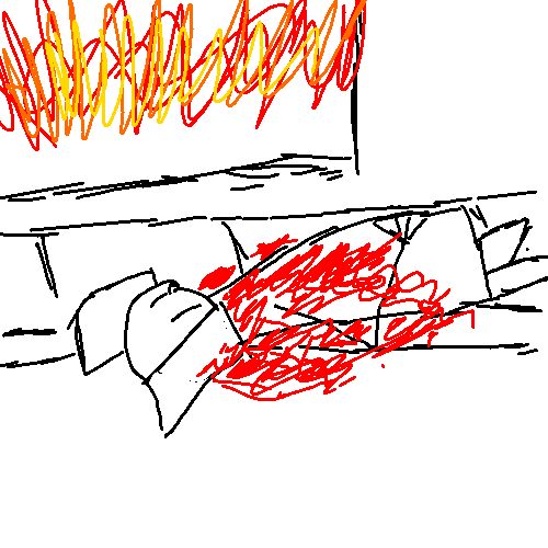 ...And Sue finally regains sensory input only to discover that she's dying from multiple gunshot wounds in a pool of her own blood next to an apparently burning building because the author of this wreck can't come up with a better way to get this ended already.