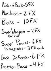 • Weakness: Similar to Bane, but instead of weakening the Baron, this would be something that hurts him more than usual. Much like Banes, these give a pretty meaty FX return, usually ranging from 3 FX for a rare attack type, and up to 10 FX for something more common.