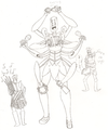 (Human/Female/Inventor's Assistant) One of Dr. Gialgorra's four daughters. Enjoys explosions and firearms. Her arms have been replaced with (detachable) synthetic prostheses that give her capabilities far beyond the human norm. Her weapon of choice: a belt-fed 40 millimeter repeat fire gun with a drum canister.