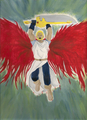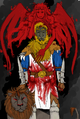 Skill-set link (Human/Male/Masked Warrior) His abnormally small soul is almost pure Chaos, creation, tying in with his roguish eccentricities, a product of his gifted Quantum Computation. An unarmed fighter beyond compare, capable of incredible feats, sworn to use only Curatiomancy. Wears the Forever Rising, an ever-shifting scarf, shading from scarlet to brassy sunrise orange upon which seven masks stand in stark relief (each with their own individual appearance), throbbing with a form of life, yeti leather bonded with the threads. A strong battlelust compels him to travel all around to find conflicts to satisfy himself. Currently travels with Mordre for the conflicts wherever Mordre goes. Wears a dark red mask named Red Eye of the Dynamo (teasingly, Nagging Wife; original name was White Sapient Legacy), with gaps over his scalp, mouth, jaw, and nose, eyeholes barely as large as his eyes, adorned with spiral stylized to look like an eye, ends canted and angled, the coiled line a brilliant orange, like fire made cloth. Would like to get to know Collete the Colossus more intimately. A State Mage and Council's Champion. Holder of the Champion's Belt, which manifests the Mask's persona.