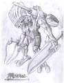(Premen/Male/War Chieftain) First encountered in the Frostback Mountains, the first organic being to damage and block direct hits from Mordre. As the Leader of the Drazken Clan, Lorgk's motives were to attack the Yetis and reclaim the bronze/ruby mine that had been wrenched from the Drazken's control 70 years ago. Foreseeing the Yetis' betrayal, Mordre joined forces with Lorgk and the Drazken to help take back the mine. A straight to business type: doesn't screw around or mince words when he can help it. Holds Mordre's words in high regard, giving Mordre overwhelming control in political or diplomatic issues. After giving over his family sword, True Edge, he now bears Legalloth, the Legacy of Lorgk, formerly Abaeloth's crystal magic-absorbing sword, containing all the souls of Lorgk's ancestors, the bearers of True Edge, save Draz, and will probably contain his own soul too, when he dies. Wears the Slayer's Bastion--formed from his old bone armor, blood vestments, and the Shell of Gavrock, bound with Goran bone and Red Steel--a reactively offensive set of durable armor stealing spilled blood to form sanguine armor. Bang's gift, the Boots of the Earth, grants Lorgk significant land speeds.