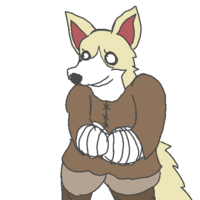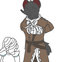 Grey is a white-coloured cute-bold or field-bold, according to her tradition; she has blue highlights underneath her ears and wears bandages covering her entire face and neck, Hiding an Injury of some sort. She also is missing a left eye and covers herself with a chest plate armour alongside an under-dress which reaches to her feet.