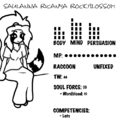 (Lunar/Raccoon/Unfixed) The main character of this quest, she is a Lunar, one of the Heroes of the Moon, with the raccoon as her totem. She is currently amnesiac, but before, she was apparently a scavenger-archeologist, searching the ruins of the cities of the Golden Age for what forgotten wonders were left, and a thief. Then, she was the prisoner of Peregine Kaan, who, in the interest of learning Titan magic, erased her identity and memories in order to attach Wordblood to her. She escaped, Exalting in the process, becoming one of Luna's champions. Now, she is the beginning of a new Titan, and ready to face the world and kick ass IN THE NAME OF LUNA AND SAULANNA RICANYA ROCKBLOSSOM!