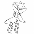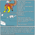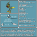 Being guided by a strange voice, Sekani is given the chance to decide the nature of his majicka. He ops for superior flying speed, the bravery of his faithful companion (a cat-like creature who died protecting Sekani from a beast), and his own essence. The end result is a very fast, agile bird who more or less followed his typical evolution path from before. Sekani tests out his speed and lands in the PORTAL BUILDING, where it's dark and creepy. He meets Iiji face to face, and attempts to attack her. She attempts to sound creepier than normal by elongating vowels randomly. It doesn't work out so well, so he escapes. There's a bunch of hugs and he accidentally tells Amiel he loves her. Oops! They head to the RECREATION BUILDING and fight the majibest from chapter 3, who's name is Tayza. Sekani is far faster, but she manages to sting him with poison in the end. He's rushed to Grasshopper, the MEDICAL ROBOT.
