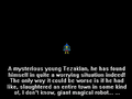 Dilia had been cured with the MAJICKA CURE that they had found earlier in light of her insanity. She was now feeling really guilty and depressed about what she had done. Meanwhile, there's no sign of Tayza and Jiniki. Sekani heads to the kitchen to make everyone food, gets stuck in a window because he has bird-thighs, and Dilia tries to explain that she's not insane anymore. Tayza shows back up and acts really weird, eventually attacking Amiel and revealing that she and Jiniki are likely under Iiji's direct control. Sekani fights her off, and Amiel realizes that being naked is bad for her survival. Sekani manages to feel Tayza's presence and the three of them head off. Sekani and Tayza battle, her nearly killing him but being shot in the nick of time with a new solution that removes their susceptibility to Iiji's long distance majicka. Sekani had learned that a giant chimera, named Jaysiph, had been released. He is completely insane. Tayza heads off to get Jiniki, and RAGEs over things so quickly that Jiniki loses to her for the first time ever. She gives her the solution, and then Jaysiph appears and is scary. Jiniki takes a solution made to enhance majicka, and throws him a long distance for time-out. She then enters his mind and finds a weak and vulnerable creature who wants to die. She feels sorry for it, and begins begging the others to find some way to save him. After a long battle with him, Jiniki enters his mind a second time but is unable to save him. Amiel shoots he becomes the second real death in the quest. They enter the PORTAL BUILDING where Iiji lies.